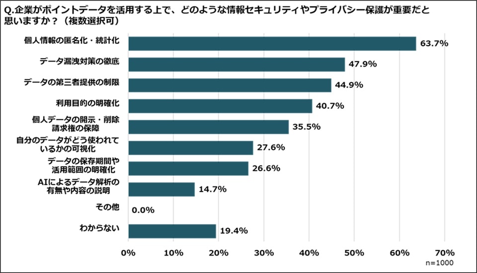 ・企業がポイントデータを活用する上で、どのような情報セキュリティやプライバシー保護が重要だと思うか(MA)
